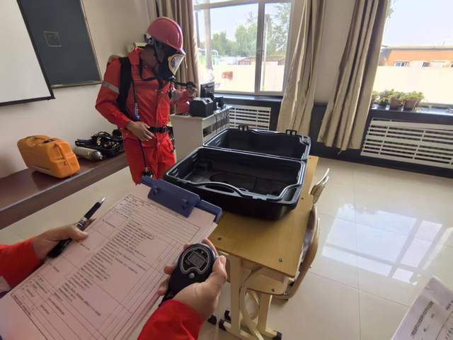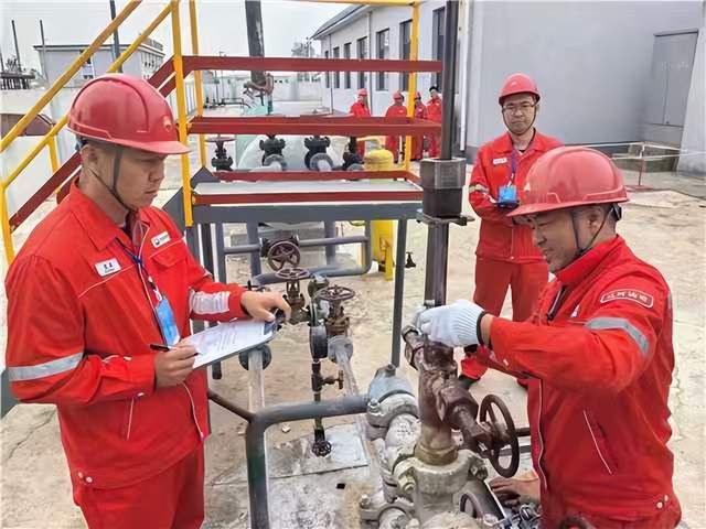 9月19日,雷一转计量间内,高级技师邓强和李继祥正在为三名单井点员工讲解压力表更换要领。这场培训内容完全根据员工“技能订单”定制,涵盖压力表更换、穿戴正压式空气呼吸器使用等急需技能。