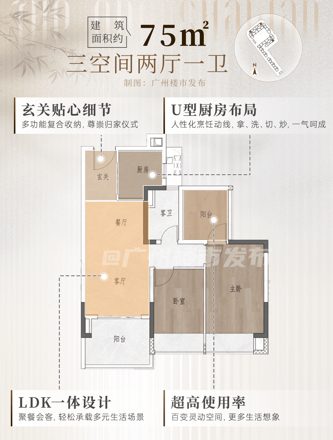 一来,对比片区同面积二手(使用率普遍70-85%),项目使用空间更大,满足买家向上置换的体验。