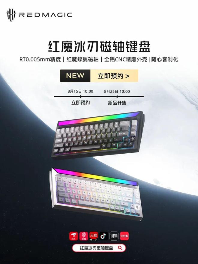 同时,红魔游戏手机还在今天宣布,“红魔首款全金属外壳磁轴键盘来啦!红魔冰刃磁轴键盘8月15日正式预约,8月25日新品开售”。