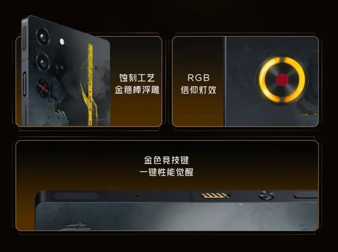官方海报显示,这款机型在红魔 10S Pro 的基础上加入了一系列《斗战胜佛》元素,包括联名定制系统和定制配件,其背部设计以水墨云纹为底,还加入了蚀刻工艺的金箍棒浮雕。