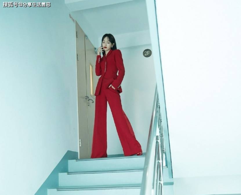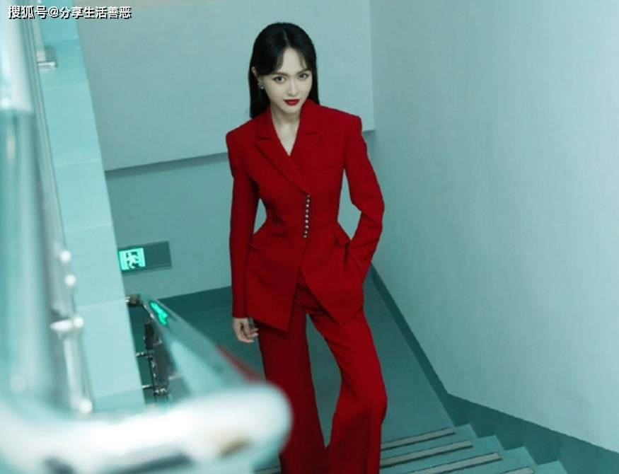 那天,活动现场热闹得如同煮开了的一锅粥。就在这时,唐嫣出现了,她身着的那套红色修身西服,宛如一团熊熊燃烧的炽热火焰,一下子就从人群中脱颖而出。那红色,鲜艳得如同刚从颜料罐里蹦出来,饱和度高得简直要冲破天际,瞬间就把所有人的目光给紧紧吸住了,仿佛有一种神奇的魔力,让人根本无法移开视线。